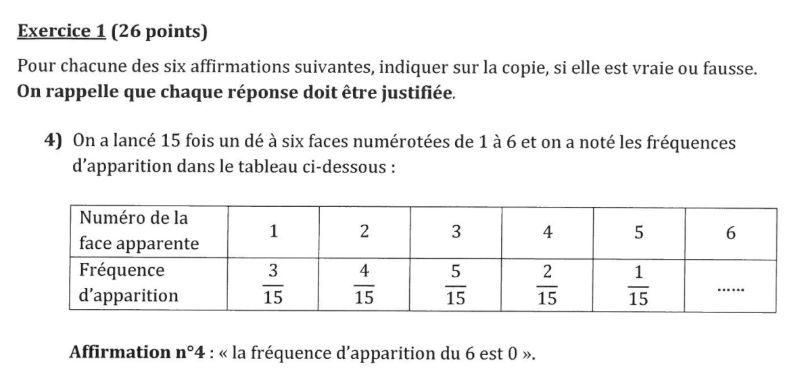 Affirmation : « La fréquence d’apparition du 6 est 0 ».