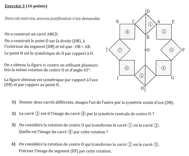 La figure obtenue est symétrique par rapport à l’axe (DB) et par rapport au point O.
