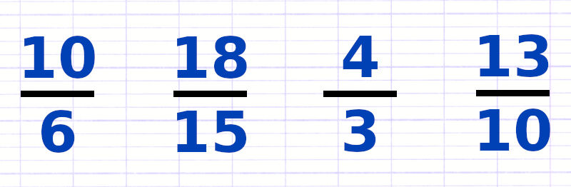 Comment comparer les fractions 9/4 et 8/3 ? Ces 2 fractions possèdent des dénominateurs différents (4 et 3).