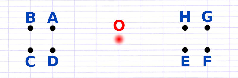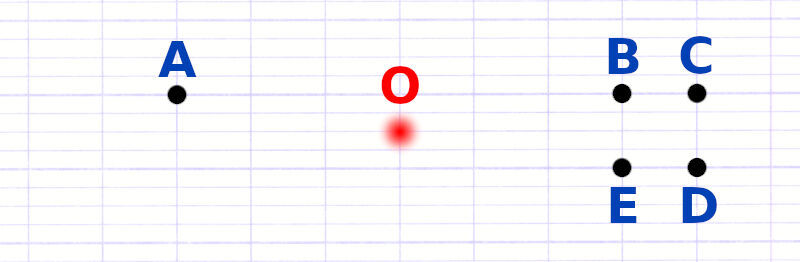 Dans une symétrie centrale, les constructions s’effectuent par rapport à un point appelé centre de symétrie. L’image d’un point par symétrie centrale est le symétrique du point de l’autre côté du centre de symétrie.