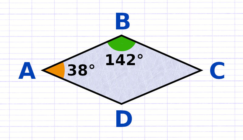 Le losange est un quadrilatère, il possède donc 4 angles dont la somme est égale à 360°. Les angles opposés (face à face) du losange ont la particularité d’être toujours de la même mesure. Le losange possède 2 paires d’angles opposés, donc 2 paires d’angles de même mesure. Si tous les angles d’un losange mesurent 90°, alors il s’agit d’un carré.