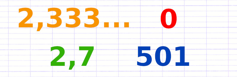 - Si la partie décimale est infinie (la quantité de chiffres est illimitée), alors il ne s’agit pas d’un nombre décimal.