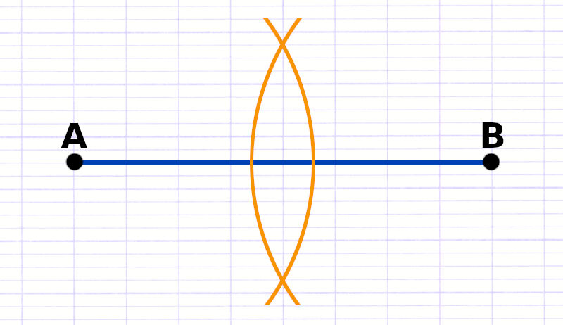 Pour cela, on positionne la pointe du compas sur l’un des 2 points à l’extrémité du segment. Le compas est ensuite écarté d’une longueur plus grande que la moitié du segment.