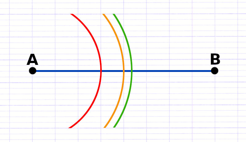 L’arc de cercle a pour centre A (point d’extrémité du segment). Son rayon est plus grand que la moitié du segment [AB].