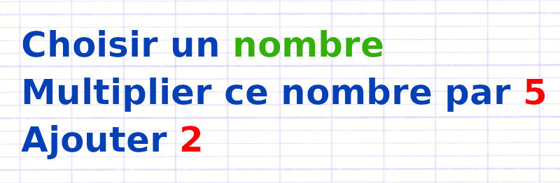 On peut ensuite vérifier facilement si la transformation du programme de calcul en expression littérale est correcte. La technique consiste à effectuer le programme de calcul et l’expression littérale en utilisant le même nombre de départ :